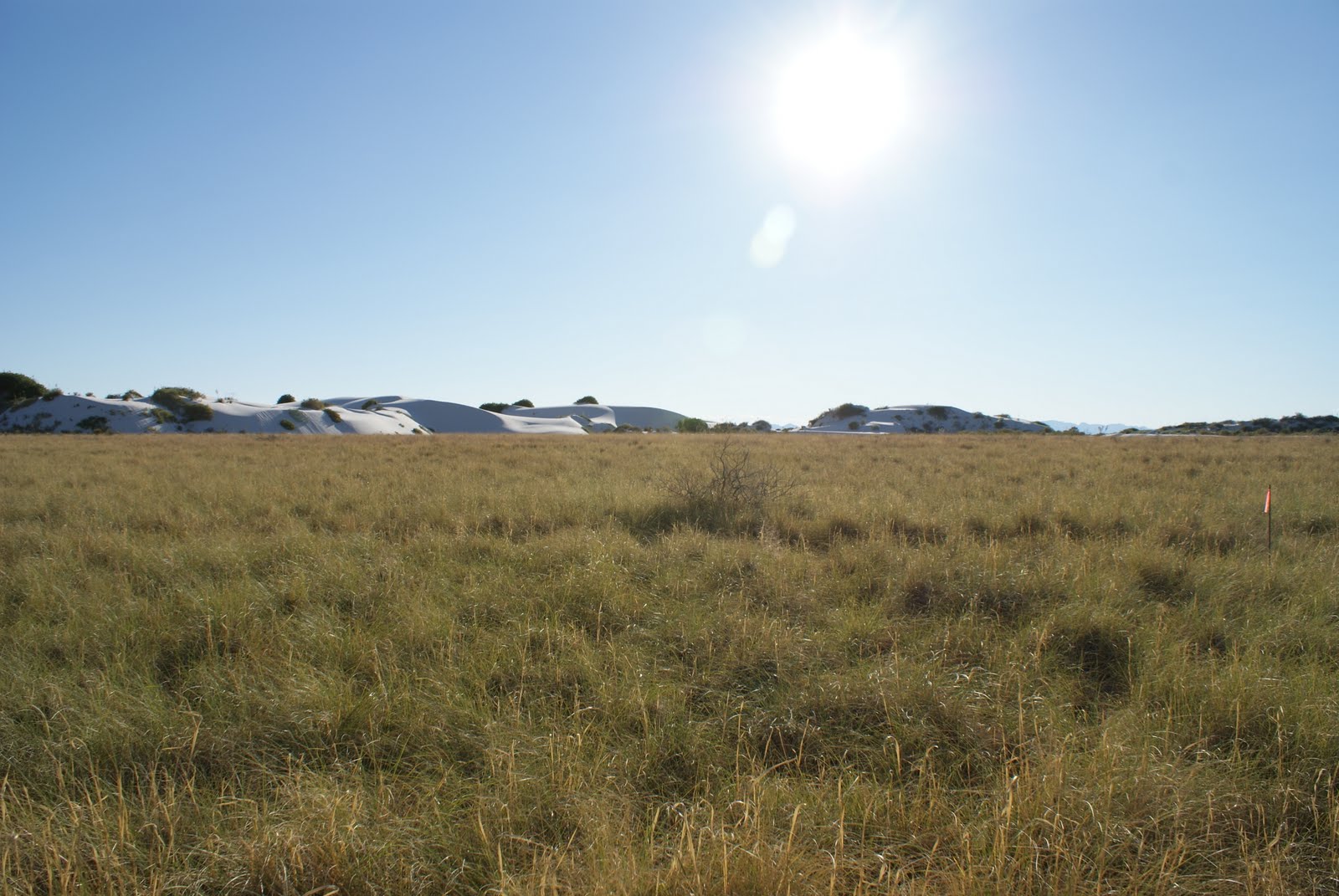 This is the second time we visited White Sands. Notice the difference in the sky and you can see the mountains beyond the sand mounds.